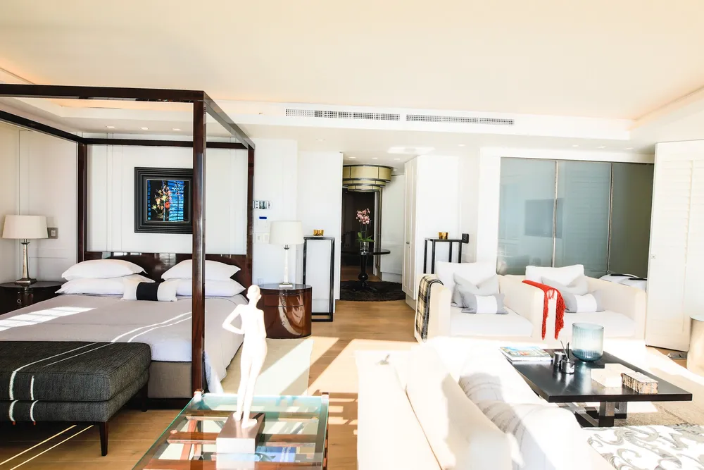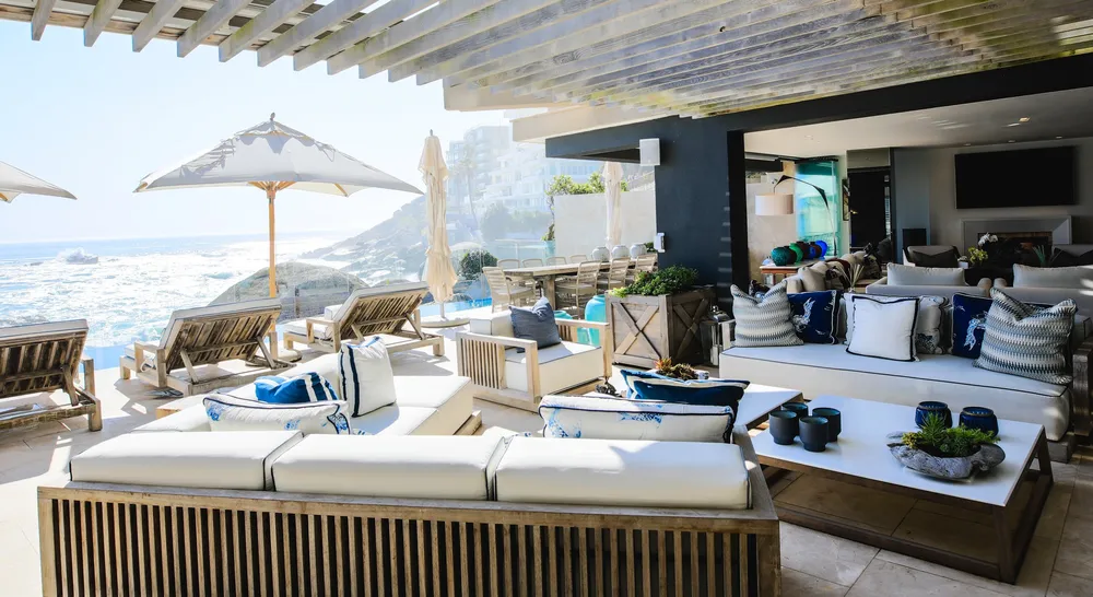 The eight-bedroom beach apartment is forged into the cliffside flanking of one of Clifton’s premiere beaches and it offers uninterrupted views across the Atlantic Ocean and 12 Apostles mountain range.