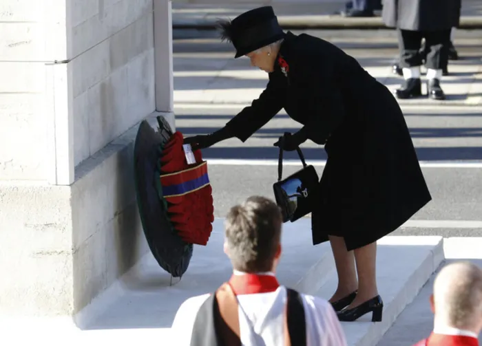 Britain's Queen Elizabeth lays a wreath during the annual Remembrance Sunday ceremony at the Cenotaph in London on Sunday. Britain's Queen Elizabeth lays a wreath during the annual Remembrance Sunday ceremony at the Cenotaph in London on Sunday.