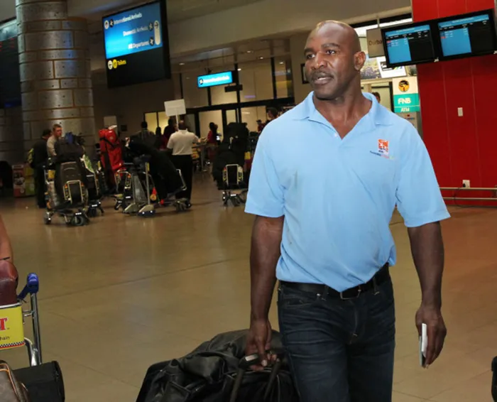 Evander Holyfield, the former world heavyweight boxing champion, arrives at King Shaka International Airport on Monday. He will be taking part in tomorrow's Pro-Am of the Nelson Mandela Championship at Royal Durban Golf Club. Picture: Gcina Ndwalane Evander Holyfield, the former world heavyweight boxing champion, arrives at King Shaka International Airport on Monday. He will be taking part in tomorrow's Pro-Am of the Nelson Mandela Championship at Royal Durban Golf Club. Picture: Gcina Ndwalane