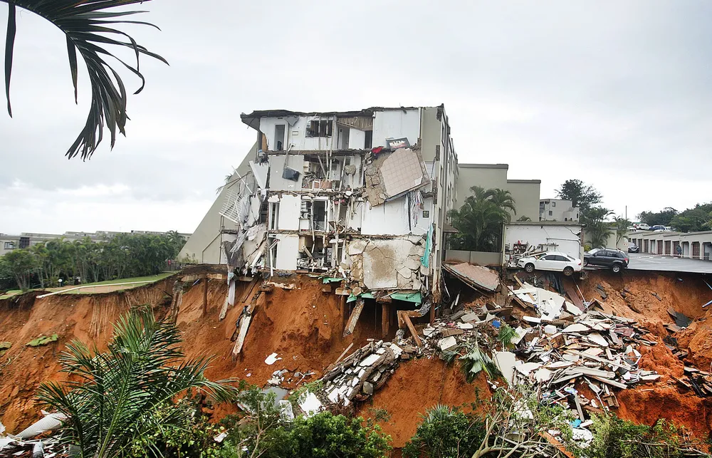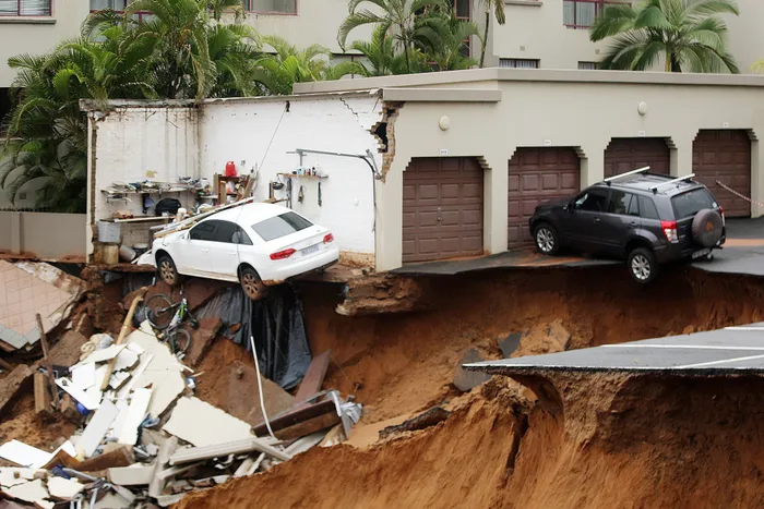 Residents were evacuated from flats in uMdloti after heavy rains washed away part of the building and their belongings. Picture: Bongani Mbatha/African News Agency (ANA)