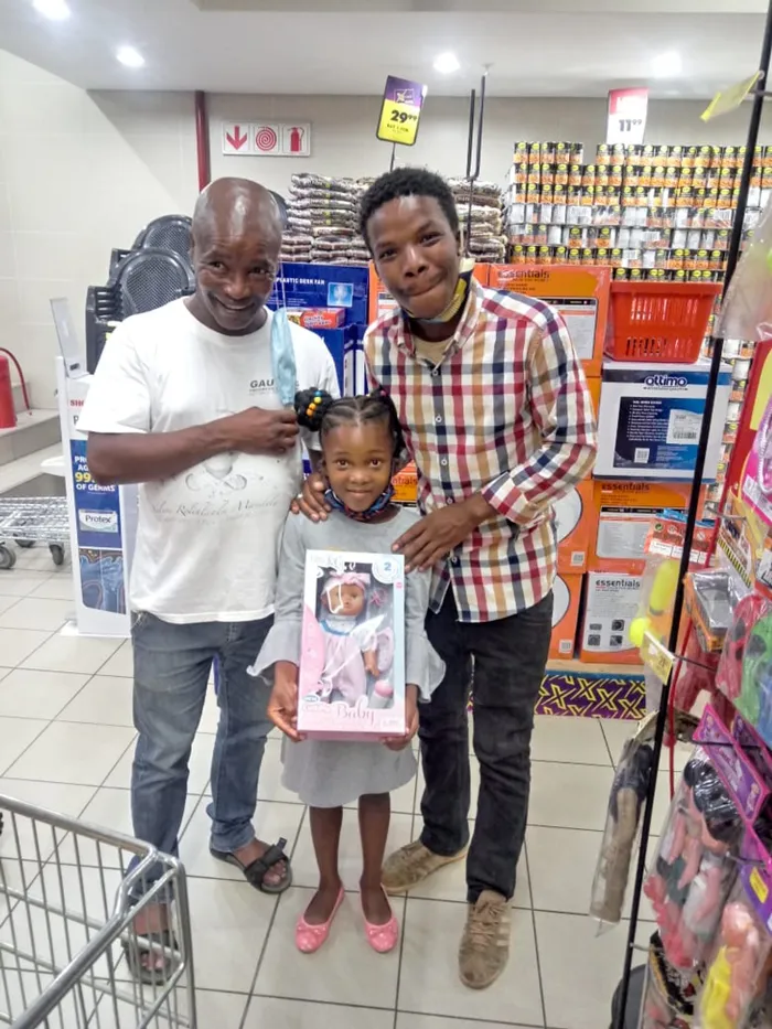 Ray Hanning, left, his daughter and Mayibuye Mandela doing Christmas shopping. Picture: James Mahlokwane