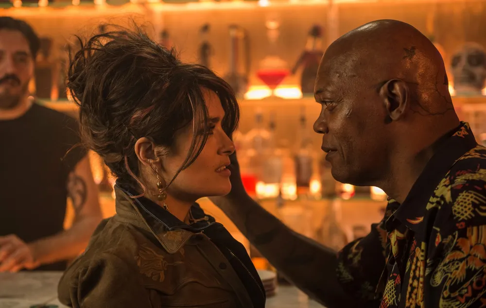 From the start, Kinkaid displays an eagerness to leave his custodian behind and kill his would-be assassins by himself. But he’s never looking to actually escape: He’s willing to serve out his life sentence for his own crimes, so long as officials will keep their promise to pardon his also-imprisoned wife Sonia (Hayek) if he co-operates. (In a dopily amusing flashback, we see how Sonia won Darius’s heart in a cantina brawl.)