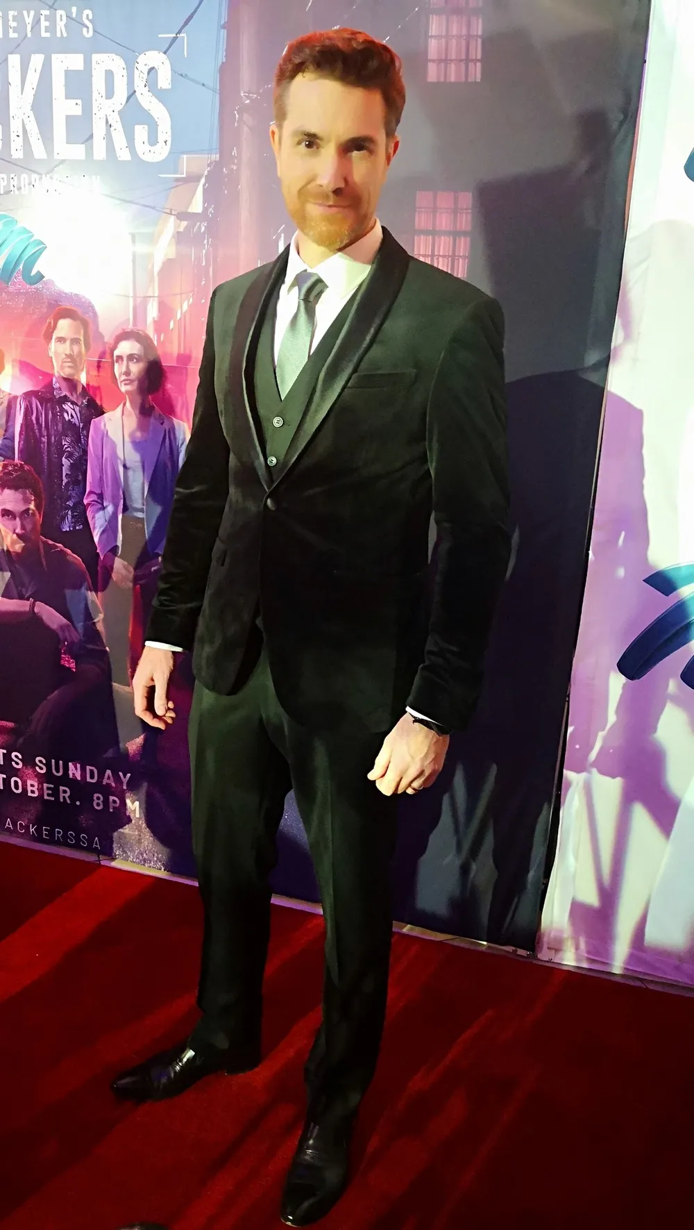 James Gracie (formerly Alexander) also looked dapper in a velvet tuxedo jacket and waistcoat, and a necktie.