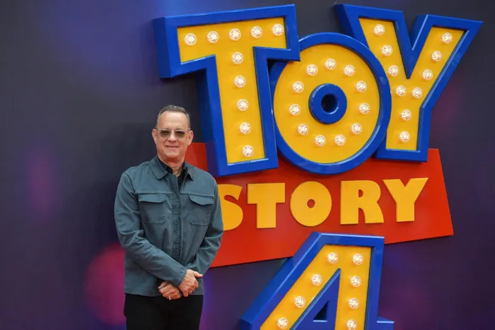 US actor Tom Hanks poses on the red carpet upon arriving for the European premiere of the film Toy Story 4 in London.