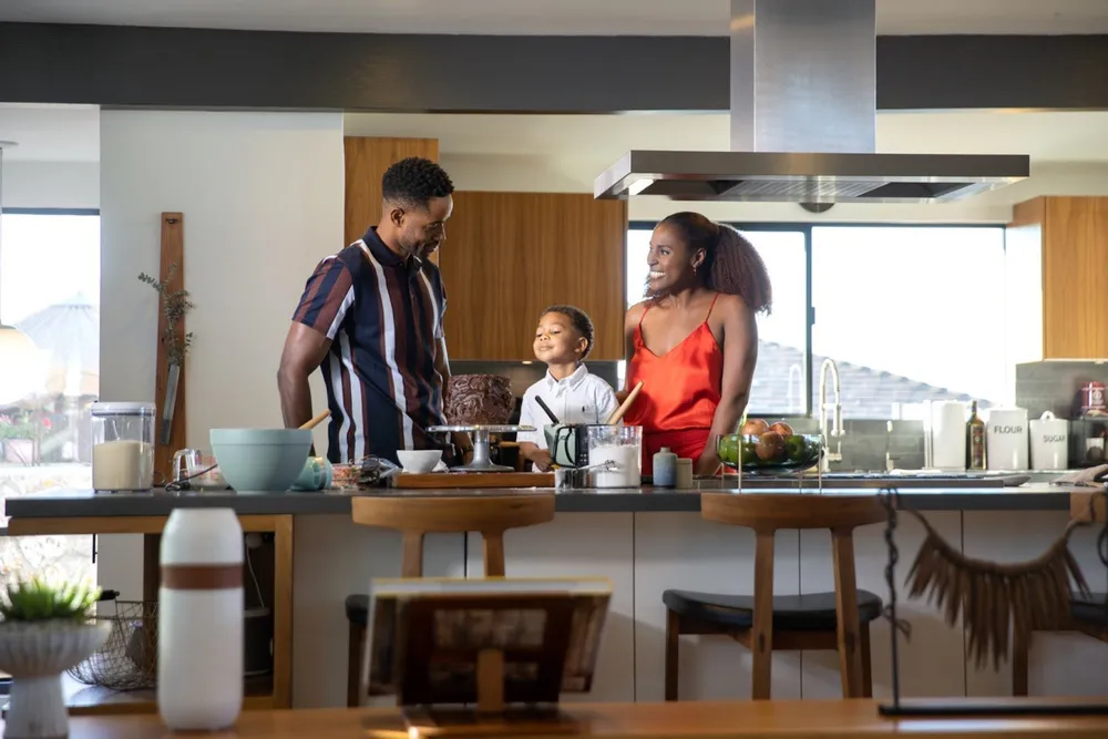 She comes home to Lawrence, a toddler Elijah and a birthday cake. Before the couple head out, she goes to the bathroom to get ready - a familiar scene.
