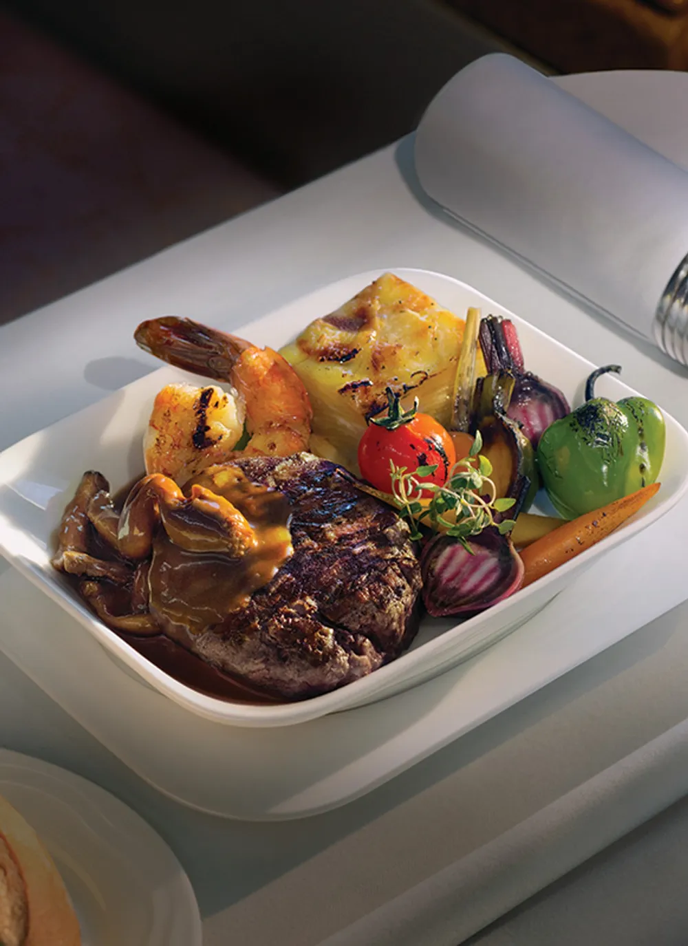 On the first and business class tapas menu, the meat lovers can enjoy generous portions ostrich meat dishes from local producer, Ostriland.