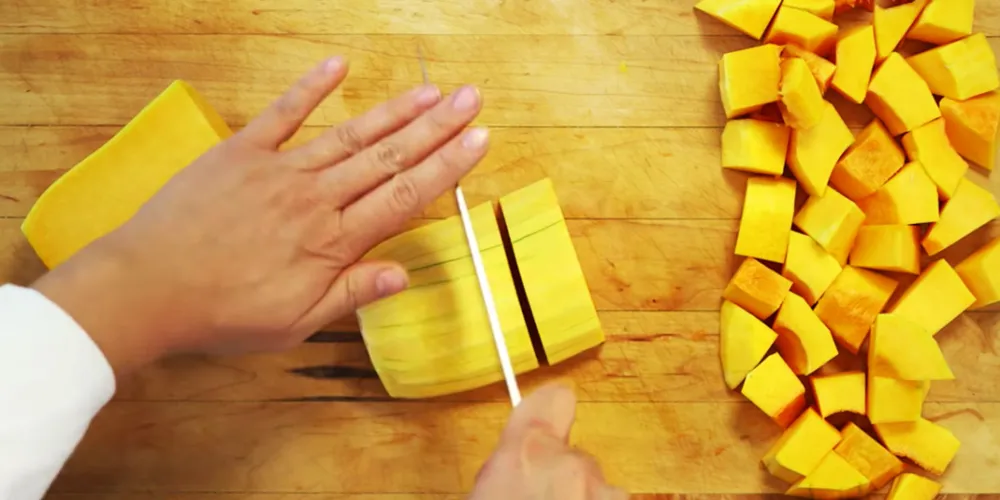 Butternut squash is integral to home cooked meals like creamy and cheesy pastas, soups, and veggie-packed desserts. Don't let the big gourd frighten you - these four steps will teach you how to peel, seed and slice butternut squash with no hassle.