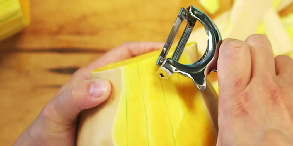 STEP 2: Peel the butternut squash, by using a sharp vegetable peeler or paring knife to remove the tough skin.