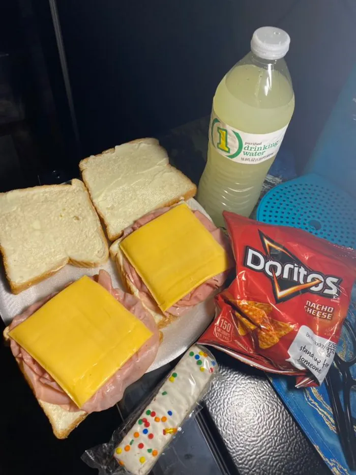 This week, one Twitter user, @KammieTranese shared hers which is a cheese sandwich, flavoured water, a mini-cake, and Doritos chips. Many people disagreed with her, asking how two sandwiches, a snack cake, a bag of Doritos, and a drink is a struggle?