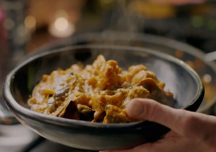 “And for those who feel hesitant about the idea, I assure you that you would never guess my banana skin curry had banana skins in it. You wouldn't even think bananas. I love that this is a dish made with something that would normally go in the bin, although that wouldn't be enough to justify its presence in the programme. It's there because it is just a glorious thing to eat.”