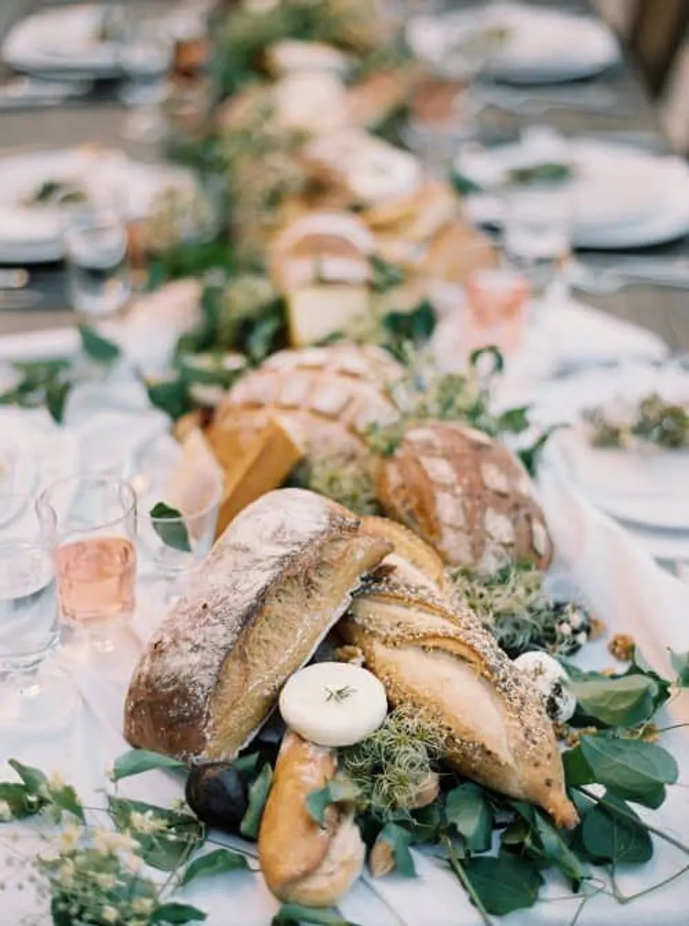 Wrap the bread in brown paper and twine for an extra rustic finish. The occasional sprig of rosemary tucked between loaves will completely finish off the tablescape.