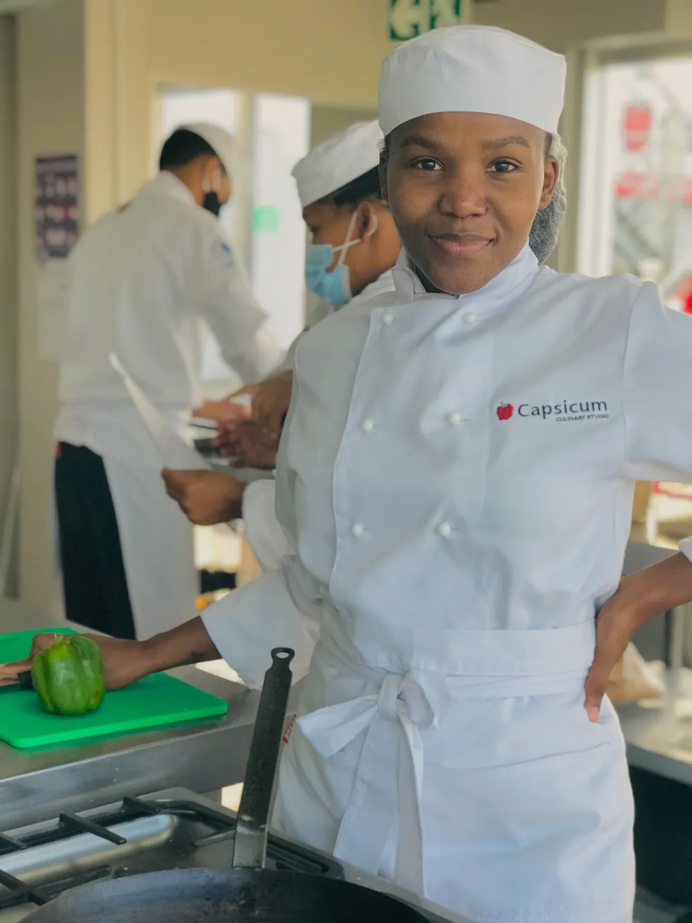 Born and bred in New Brighton, a township in the Eastern Cape, she graduated from Gqeberha’s Capsicum Culinary Studio in 2021 and is running her own successful catering company in East London, called Liyachuma.