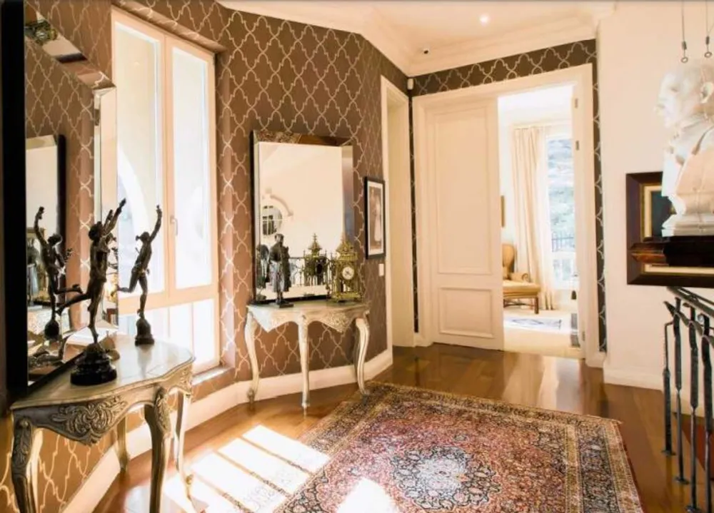 The home‘s exterior is meant to blend with the mountain. Inside Chinese vases, Rococo clocks, figurine candelabras, grand pianos, baroque gold-framed mirrors and artworks dot the home.