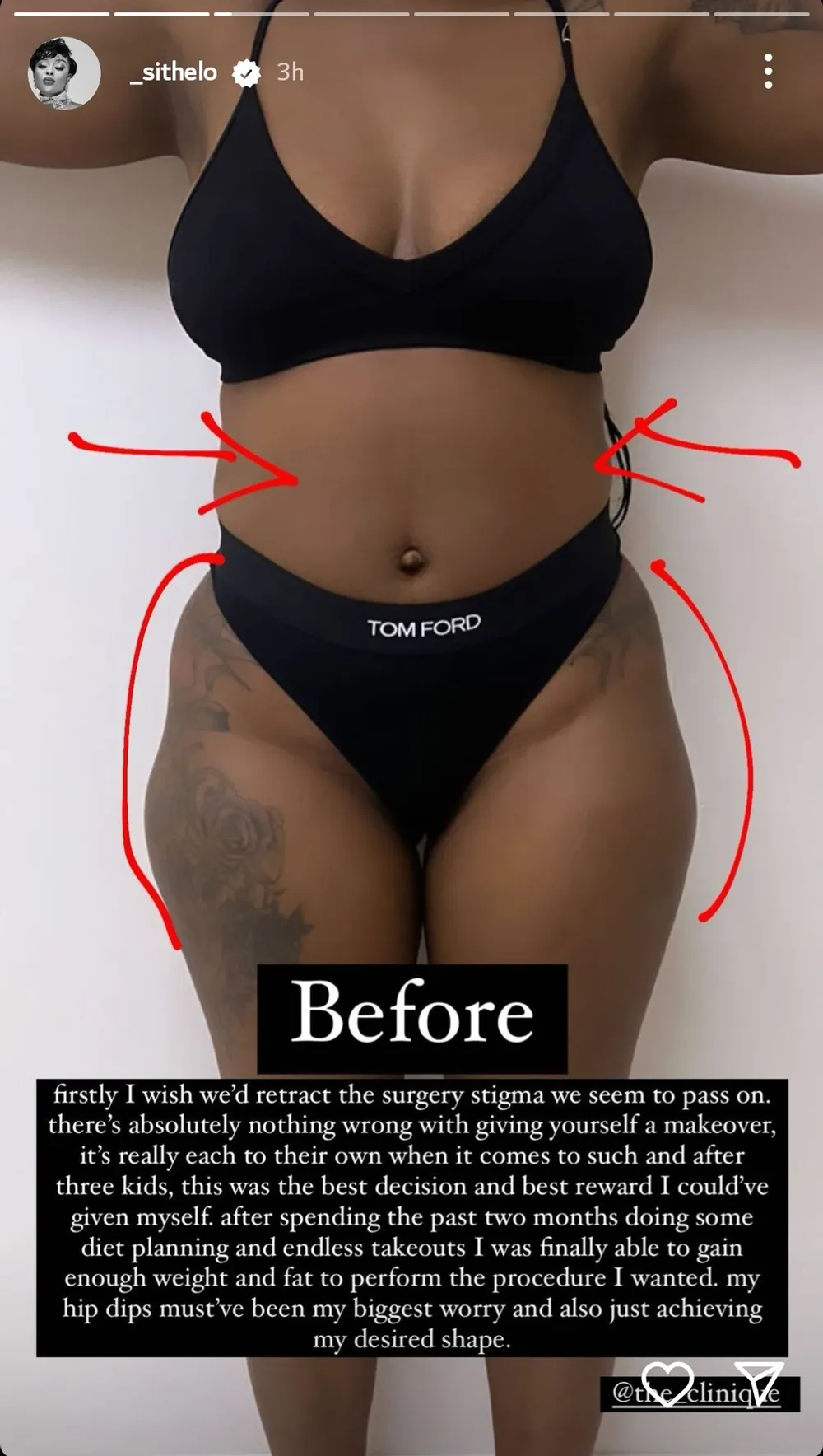 LOOK: Sithelo Shozi shows off mommy makeover body after undergoing Brazilian butt lift
