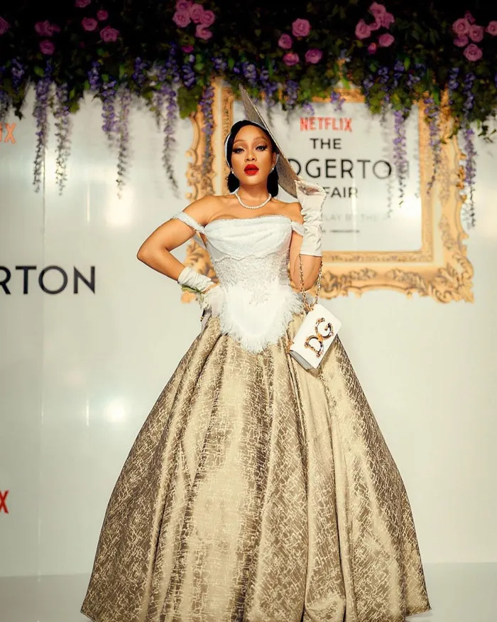 “The theme of the night was a hot conversation, honey. Guests were tasked with interpreting Bridgerton Royalty, Regency with an African flair. They executed the dress code to their best understanding, and some won and some missed. The brief was pretty simple, well depending on how you look at it, celebrities had room to play with the theme. Did they do justice to the theme, yes and no?”