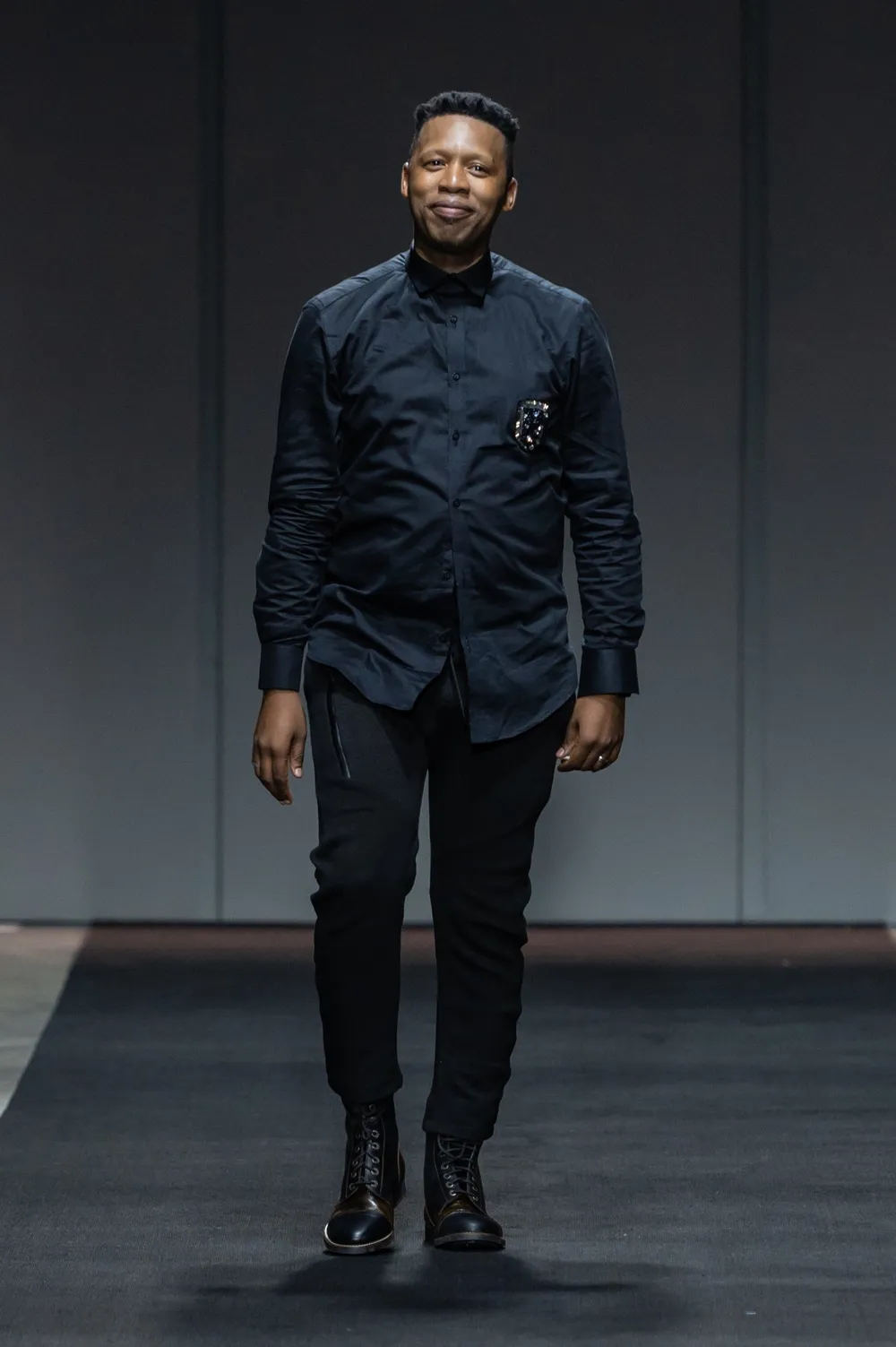 Molingoana has earned several GQ Best Dressed awards and counts many South African A-list celebrities as clients. With his work and personal style much loved by the media, the brand has showcased at SA Fashion Week since 2002.