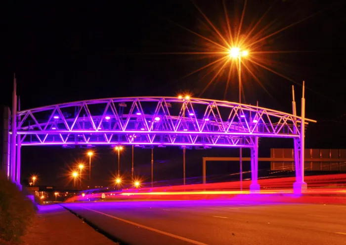 493 16/01/2012 The infamous coloured lights of a Sanral tolling gantry can be seen illuminating Gautengs roads during the night. Picture: Ihsaan Haffejee 493 16/01/2012 The infamous coloured lights of a Sanral tolling gantry can be seen illuminating Gautengs roads during the night. Picture: Ihsaan Haffejee