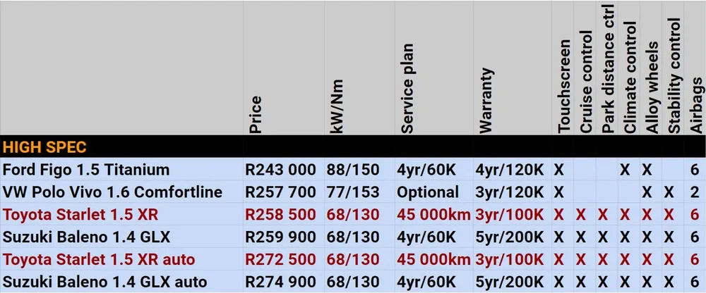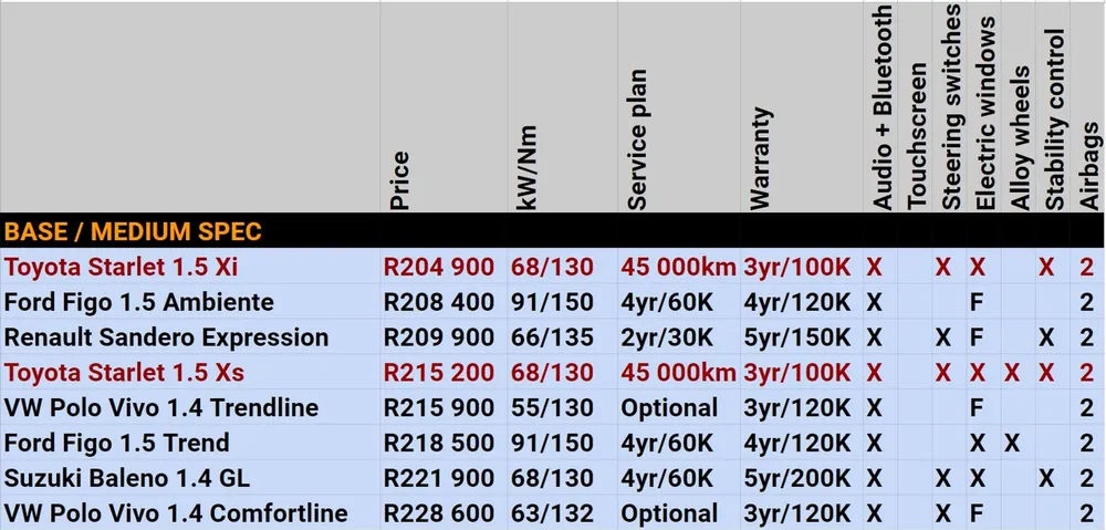 With a starting price of R204 900, the Toyota Starlet is the cheapest vehicle in its category, but how does it compare when it comes to standard features?