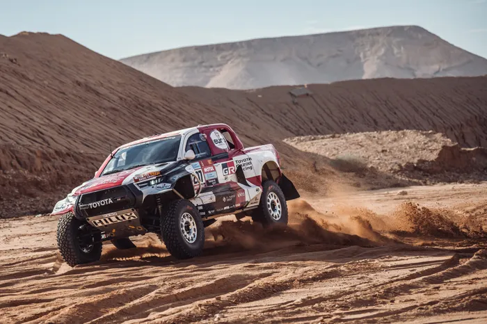 Had the oil pipe stayed in place on the new GR DKR Hilux T1+ of Giniel and Dennis, Nasser may well have had two teammates for company on Stage 8. Initially, Henk Lategan and Brett Cummings set a blistering pace, quickly racing into the lead of the stage. But their charge was halted when they spotted Giniel and Dennis, who had themselves been running at a highly competitive pace, which was clearly good enough to secure a podium position in the overall standings.
