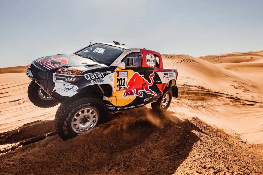 Stage 7 of the 2022 Dakar Rally brought disappointment for Toyota Gazoo Racing’s Giniel de Villiers and co-driver Dennis Murphy. The pair were lying in 4th position overall mid-way through the rally, after a tumultuous opening week filled with drama. But a broken oil pipe put paid to their podium aspirations, just 130km into the 402km-long stage between Riyadh and Al Dawadimi.