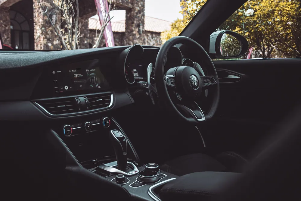 Well, the Alfa Romeo Guilia Veloce is powered by a 206kW 2.0-litre turbocharged motor with 400 of Sir Isaac Newton’s finest. The ZF 8-speed automatic is also impressive. The shifts, both down and up, are so quick and smooth that the lightest touch on one of the aluminium paddles will change a gear.
