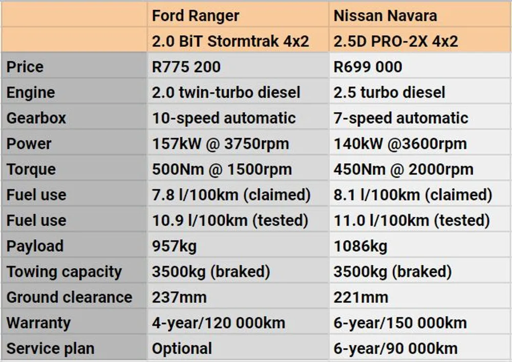 Comparison test: Nissan Navara PRO-2X vs Ford Ranger Stormtrak