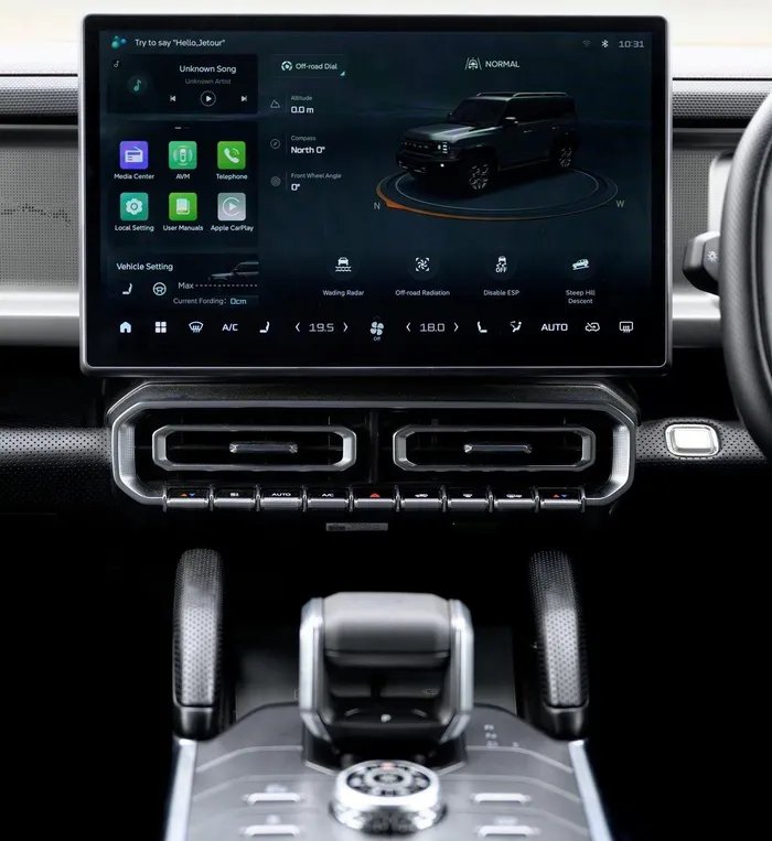 Jetour has done a brilliant job of bringing those ‘adventure’ vibes into the cabin. The design is a bit on the boxy side, and there are interesting details scattered throughout, such as topographic-style patterns and embossed graphics on the dashboard, and even the ventilation holes on the seats seem to carry geographic inspiration.