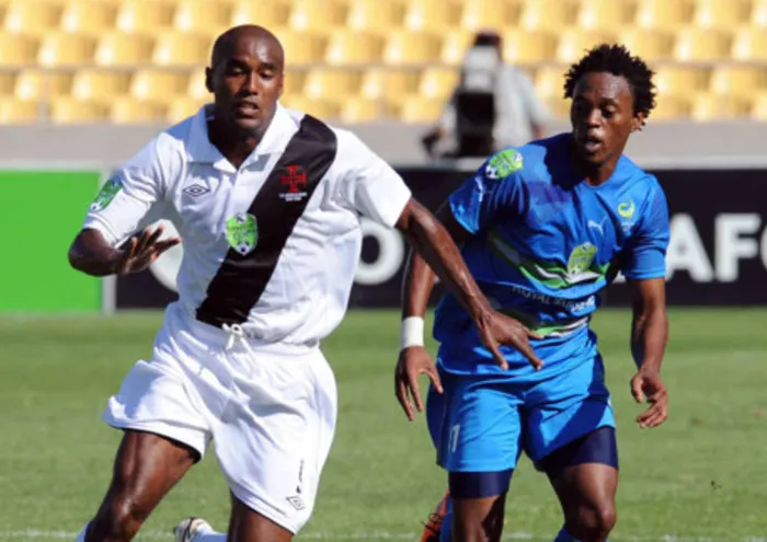 Vasco's Jonathan Armogam scoots past Platinim's Reuben Thebanang on Saturday Vasco's Jonathan Armogam scoots past Platinim's Reuben Thebanang on Saturday