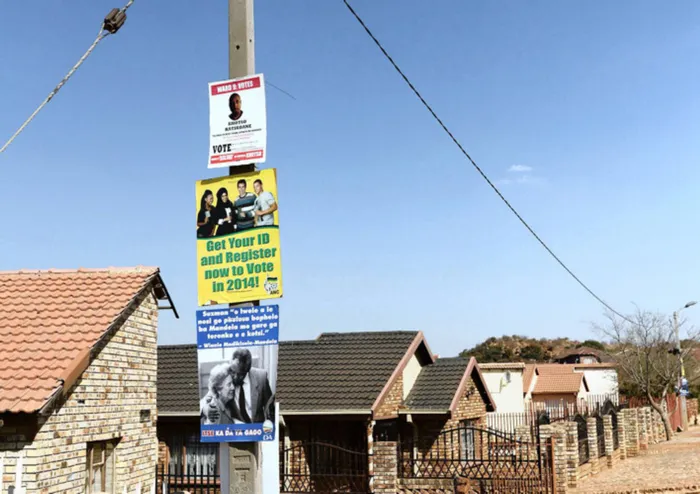 020813. Ikageng Township in Tlokwe, Potchefstroom. Democratic Alliance(DA), African National Congress(ANC) and independent candidate Khotso Ratikoane by-elections posters. Picture: Dumisani Sibeko. 020813. Ikageng Township in Tlokwe, Potchefstroom. Democratic Alliance(DA), African National Congress(ANC) and independent candidate Khotso Ratikoane by-elections posters. Picture: Dumisani Sibeko.