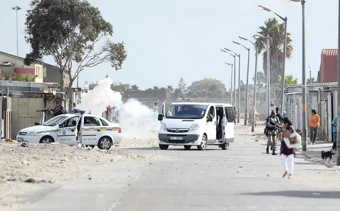 Stun grenades were used in Manenberg during gang violence, when police and residents clashed. Pictures: Leon Knipe Stun grenades were used in Manenberg during gang violence, when police and residents clashed. Pictures: Leon Knipe