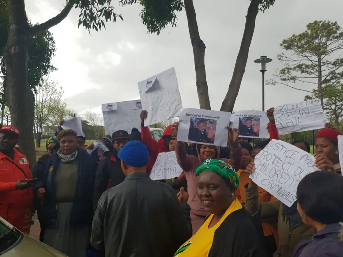 Protesters outside the Wynberg Magistrate's Court on Wednesday. Picture: Nadine Ford-Kritzinger/Cape Argus Protesters outside the Wynberg Magistrate's Court on Wednesday. Picture: Nadine Ford-Kritzinger/Cape Argus