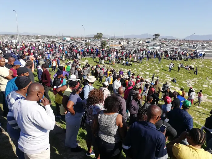 Covid-19 Informal Settlement and Saniters Informal Settlement have a meeting with leaders on the N2 near Mew Way, Khayelitsha. Photographer: Ayanda Ndamane/African news agency