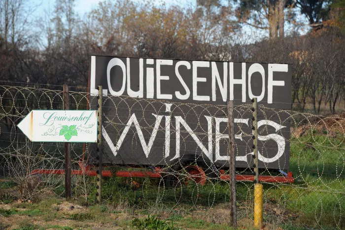 A road sign is painted with the words Louisenhof Wines. The owner of the wine farm Louiesenhof, Stefan Smit, 62, on the outskirts of Stellenbosch, Western Cape, was shot and killed in his house. File photo: Henk Kruger/African News Agency (ANA)