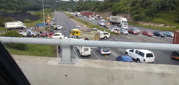"A truck and a light motor vehicle have collided in that intersection. The truck had continued quite a while up the road where it came to rest on the Durban bound carriageway of the M7 (Edwin Swales Drive). Paramedics had assessed the scene and found that two police officers in the light motor vehicle had sustained fatal injuries... there was nothing more that paramedics could do for them and they were declared deceased on the scene," he said.