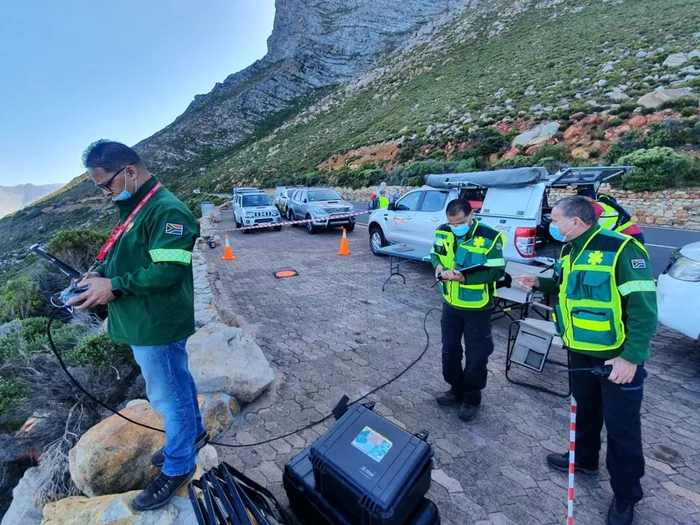 Operators fly a drone in Rooi-Els on January 28. The project was launched in December last year to assist in search and rescue operations at sea and in mountains. Picture: Supplied