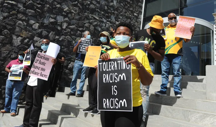 Cape Town - The ANC led an anti-racism protest outside news channel eNCA’s offices in Zonnebloem, following alleged discrimination and racism by eNCA reporter Lindsay Dentlinger.
