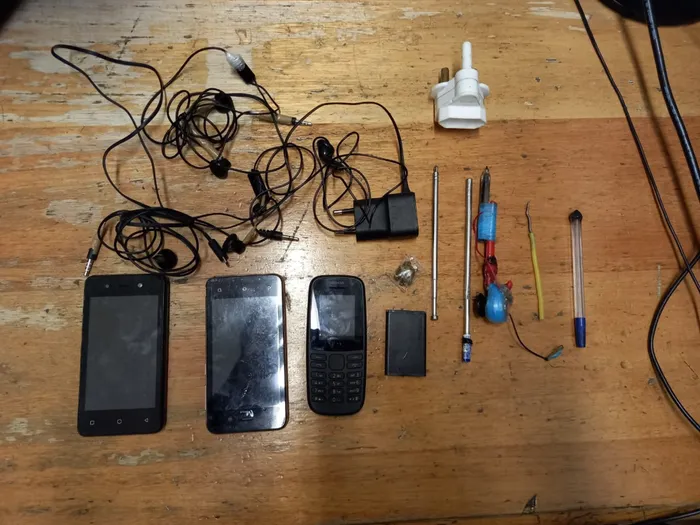 Some of the cellphones and illegal weapons found in Goodwood prison. Picture: Supplied