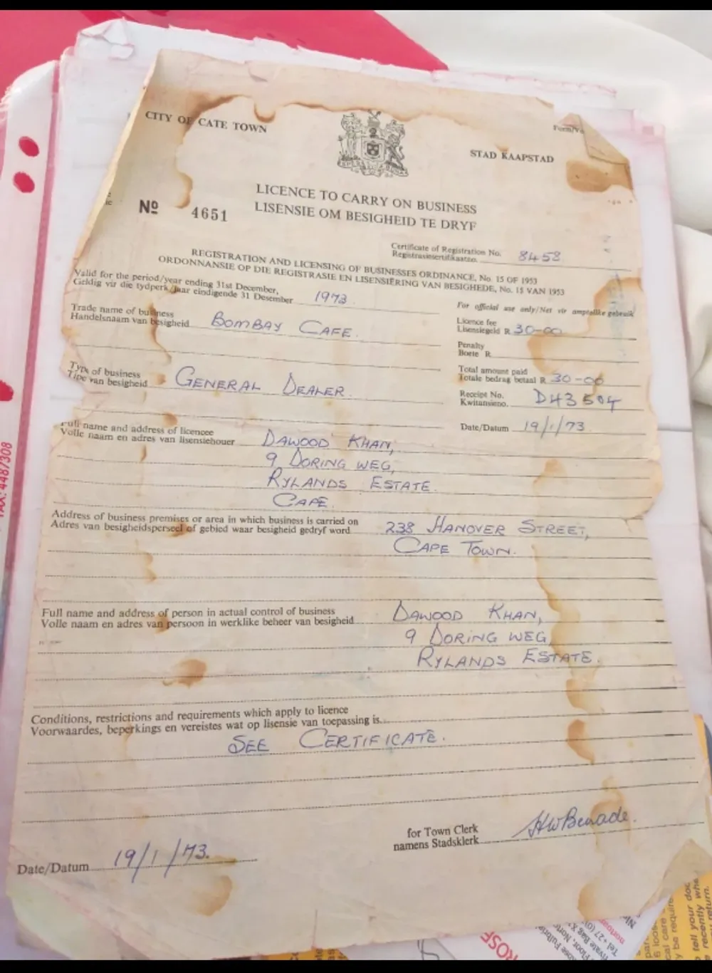 The Khan family endured their fair share of tragedy. They lost two daughters – one was killed by a drunk driver in 1959 and another died of leukaemia in 1965. A year later, on the Muslims’ holiest day of the week, a Friday, February 11, 1966, the apartheid regime declared District Six white. Shortly thereafter the family received a letter that they had to move – and packed for Rylands.