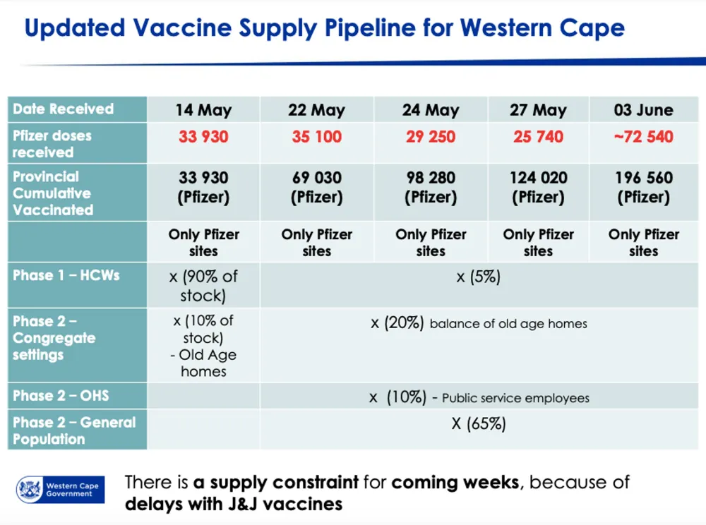 The province is still waiting on the arrival of the Johnson & Johnson (J&J) vaccines, which has affected the roll-out.