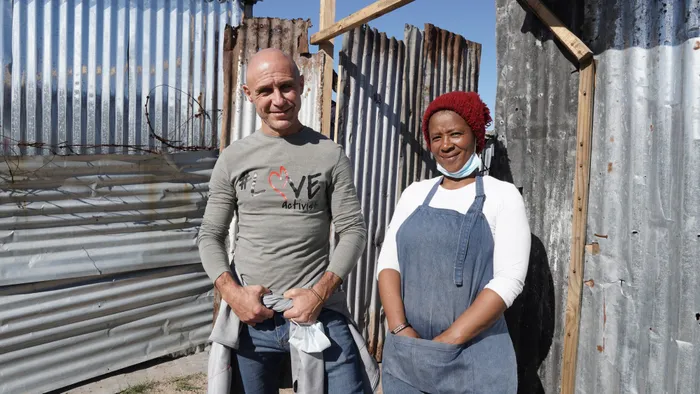 Ladles of Love founder Danny Diliberto and Nicky’s Soup Kitchen founder Tamara Mlumbi. Nicky’s Soup Kitchen is run from Mlumbi’s shack, which she shares with 11 other people and to date feeds more than 600 people daily. Picture: Supplied