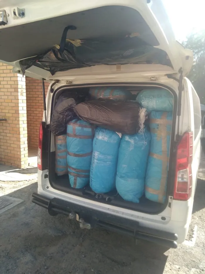 Containers in the back of a vehicle. Police in the Western Cape confiscated R1.4 million worth of cannabis. Photo: SAPS