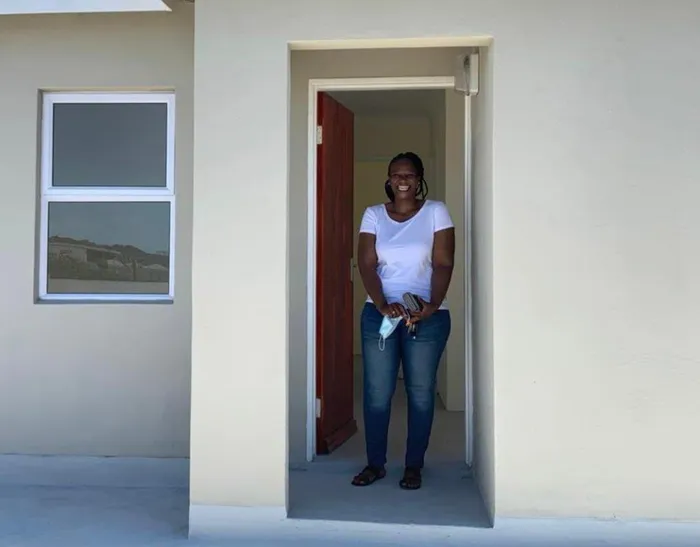 A woman stands in the doorway of a house. Ntombi Peters in the doorway of her new home in the Forest Village Housing Development in Eerste River. Picture: Supplied