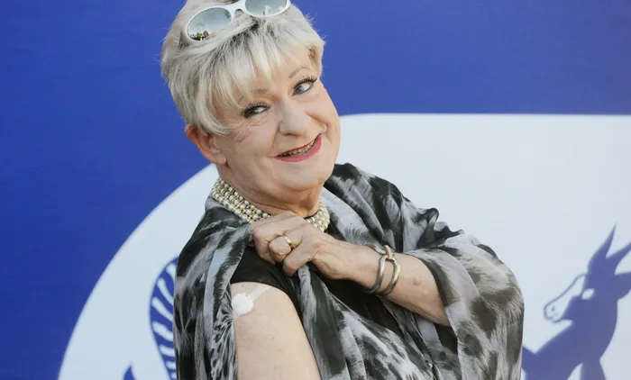 Evita Bezuidenhout aka Pieter-Dirk Uys received her Covid-19 vaccination in Malmesbury earlier this year in an effort to encourage other over 60s. Picture: Armand Hough/African News Agency(ANA)