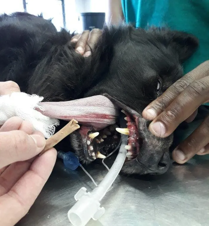 AWS SA said: “His owner also tried to fish out the bone but in the process pushed it to the back of his mouth, almost down his esophagus lacerating his tongue in the process.