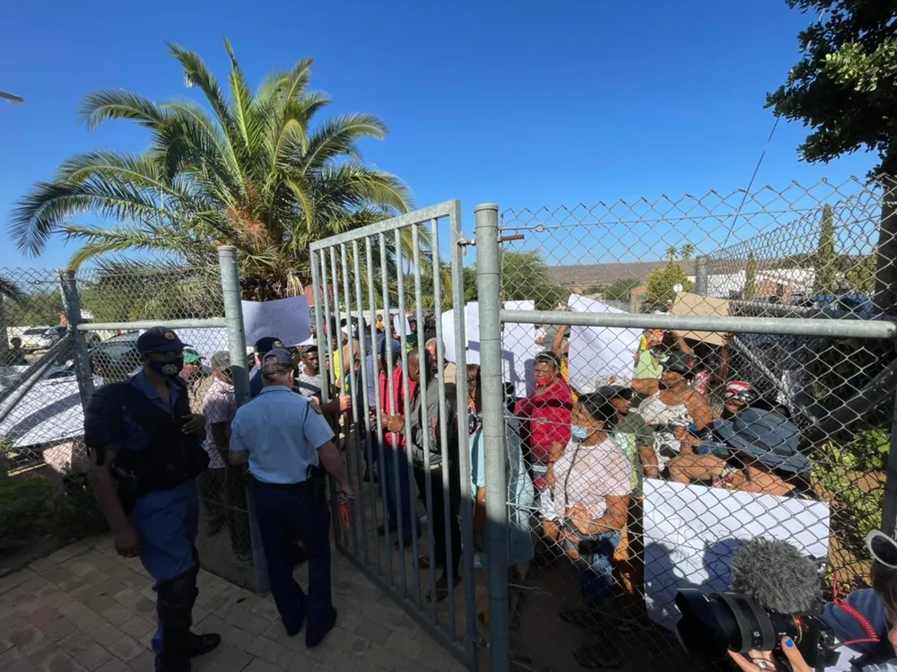 Cape Town – Angry Klawer residents protested outside the Klawer Magistrate’s Court on Monday morning during the first appearance of the 56-year-old man charged with the murder of 13-year-old Jerobejin van Wyk.