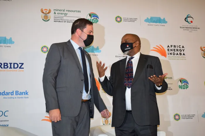 Cape Town mayor Geordin Hill-Lewis chatting with Energy Minister Gwede Mantashe before opening the African Energy Conference at the Cape Town International Convention Centre. Picture: SUpplied