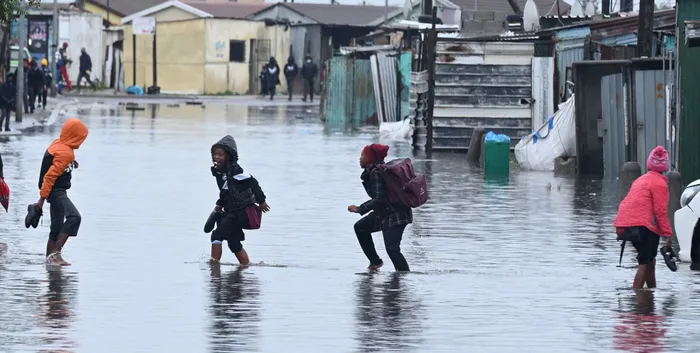 Pupils from four different schools in Bangiso Drive, Site B, Khayelitsha, walk through a flooded street on their way home last week. Picture: Ayanda Ndamane/African News Agency (ANA)
