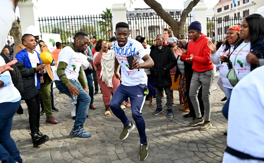 Voice raspy from rallying the crowd, Macua national co-ordinator Meshack Mbangula said they had been requesting meetings with the DMRE and the energy minister for the past two years but those requests fell on deaf ears.