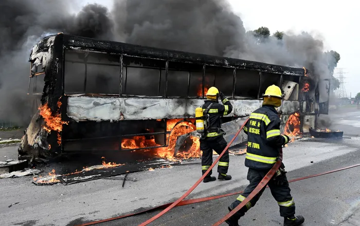 Fire and rescue were busy on Thursday morning after four buses were petrol-bombed three in Nyanga and one in Philippi. Picture: Ayanda Ndamane /African News Agency (ANA)