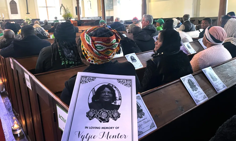 Family, friends and colleagues attended the memorial service of Vytjie Mentor at the Evangelical Lutheran Church in Cape Town on Tuesday. Picture: Ian Landsberg/African News Agency (ANA).